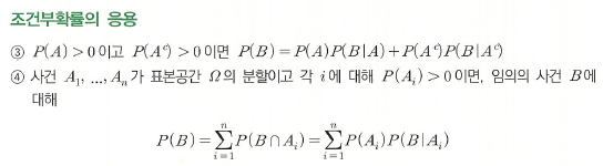 - 일 때 사건 A1, ... , An을 표본공간 Ω의 분할이라고 한다.