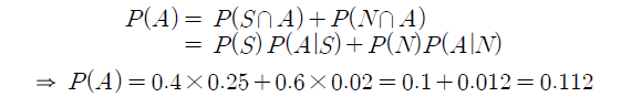 - P(A|S) = 0.25, P(A/N) = 0.02